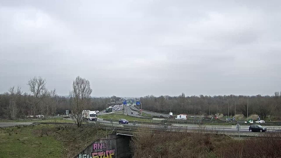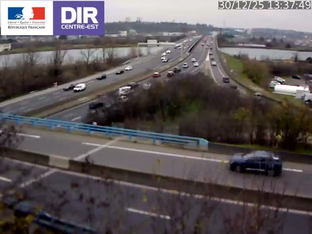 Neyron: Lyon-Autoroute A46 en périphérie de Lyon Nord et à proximité de la bifurcation A46/A42, vue orientée vers Lyon