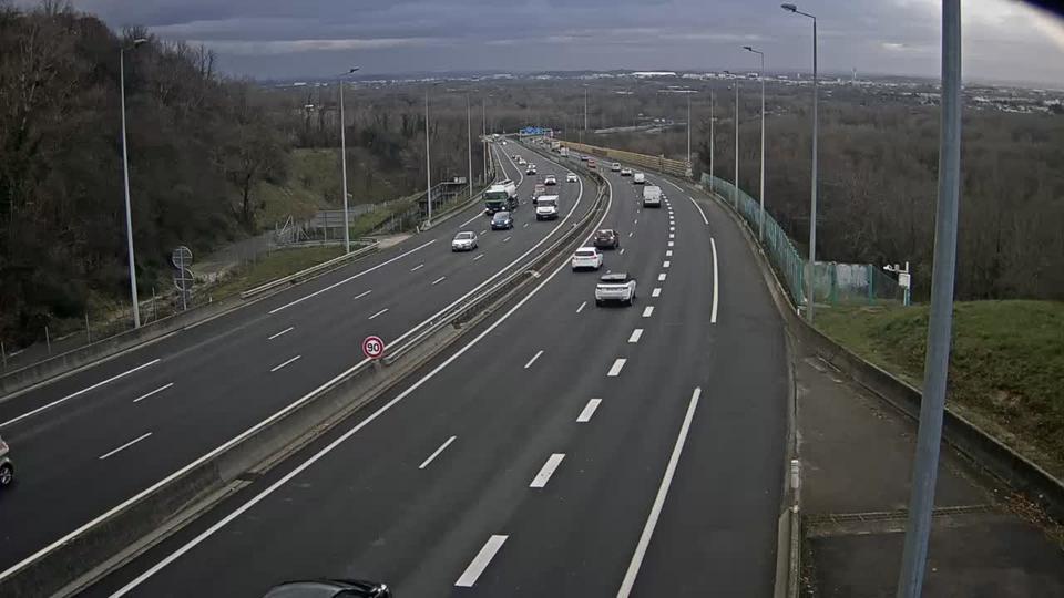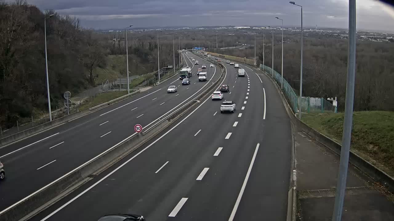 Neyron: Lyon-A42/A46 Autoroute A42 au Nord de Lyon vue orientée vers Lyon